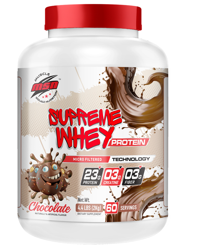 Supreme Whey kick starts your workout journey. Each serving offers 23 grams of premium protein's blend with simple carbs and digestive enzymes. It doesn’t contain any added sugar or trans-fat. This beginner's formula is specially designed for lean muscle gain, muscle recovery and to maintain strength and energy level.